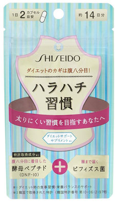 如果你有晚上吃夜宵的习惯,平时吃东西没有节制没有规律,可以每天吃2粒八分饱习惯丸,培养起健康的饮食习惯来,自然而然就会瘦了。这款资生堂的八分饱习惯丸每天只要2粒,其中含有6000个乳酸菌分子,里面的酵母乳酸菌帮助您抑制食欲,没有任何痛苦和不适就能和美食作英勇抗争,在减肥瘦身的战场上立于不败之地。酵母和酵素都是来自天然的健康原料,不会对人体有任何副作用,其中还添加了维他命B群,叶酸,维他命D,氨基酸,矿物营养素,食物纤维等。