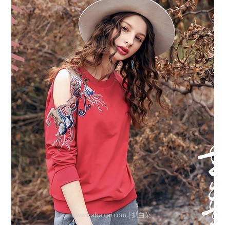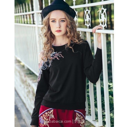 天猫商城:2018秋季新款,裂帛 女士纯棉长袖宽松圆领露肩刺绣上衣 2色 特价¥99.8,领券减¥30,实付新低¥69.8包邮 便宜,亲肤细腻,设计精巧,倍增女人味