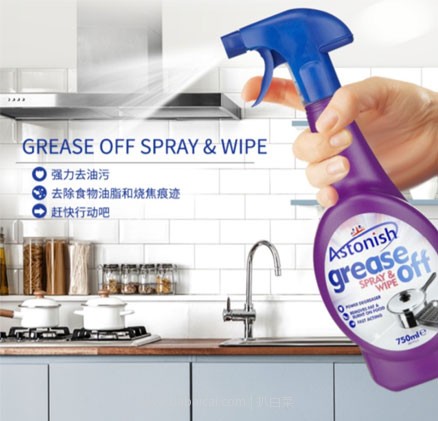 这款Astonish 油污清洁剂 750ML,英国原装进口,天然植物提取,安全无毒,强力去污,清新亮洁,抑菌去味,无刺激不伤手,适用于水槽,厨房用具和抽油烟机等,烹饪后的各种油污一次性解决!