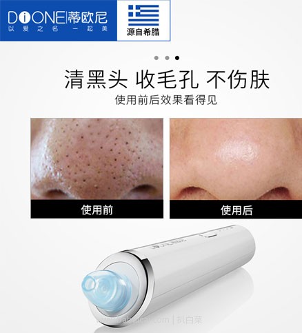 这款 DIONE 蒂欧尼 T8S 去粉刺吸黑头神器 电动美容仪,源自希腊,专业毛孔、黑头清洁专家,远销海内外20多个国家,采用先进的Vacuum negative pressure技术,与美容护理结合。三种吸头,满足不同部位需求,三档可调,55KPA超强吸力,真空负压毛孔清洁技术,深层清洁毛孔祛除黑头,同时提拉毛孔,收紧毛孔细纹。