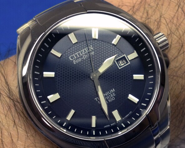 这款Citizen 西铁城BM7170-53L光动能钛合金男表,采用西铁城一贯的Eco-Drive光动能机芯,终身无需更换电池,全钛合金的表壳和表带,不但轻盈而且具有极佳的亲肤感,蓝色蜂窝装饰的表盘简洁大气,蓝宝石耐磨表镜在CITIZEN表款中也不多见,表盘直径42mm,厚度12mm,防水100米。