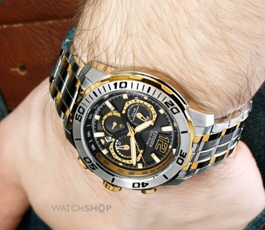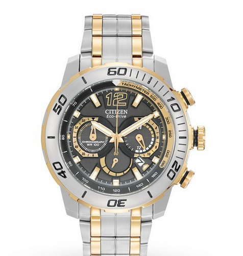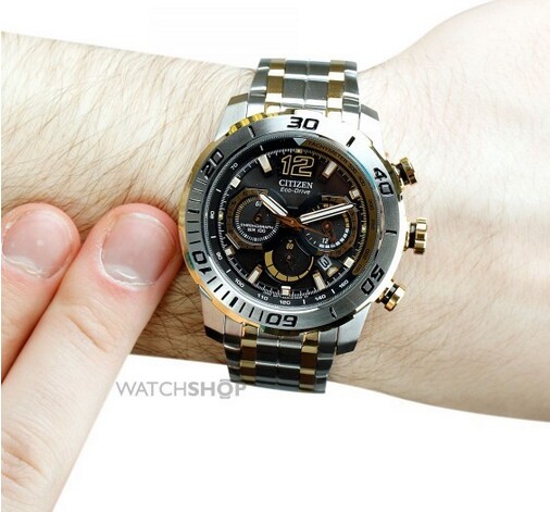 这款Citizen 西铁城CA4084-51E光动能三眼计时男表,表盘直径44mm,厚度14mm,使用Eco-drive B620光动能机芯,带防过度充电功能,配备24小时、60分钟和秒表三眼计时小表盘,可单向旋转镀金不锈钢表圈搭配拉丝银顶环,并刻有黑色阿拉伯数字计时,5点钟方向日历窗口,不锈钢旋入式后盖,耐磨抗反射矿物玻璃表镜,防水100米。