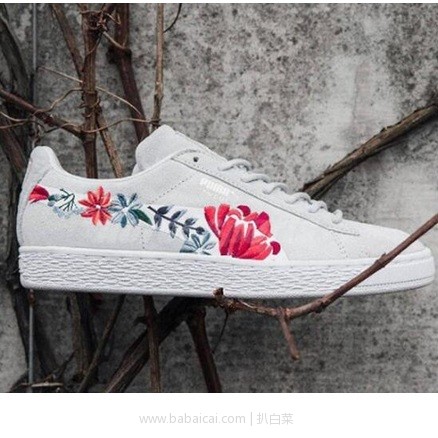 Nordstrom的这款Puma彪马Suede Hyper麂皮花卉刺绣板鞋,灰色、白色降至6折$47.96,转运到手约¥405,很合适,目前us 5.5码起有货需翻墙,任意订单免境内运费。Nordstrom购买地址>>