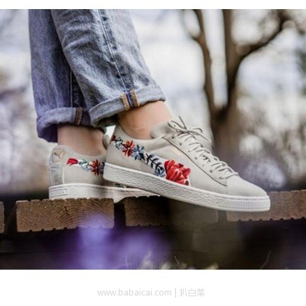 Nordstrom:Puma 彪马 Suede Hyper 麂皮花卉刺绣板鞋 6折新低价$47.96,到手约¥405 便宜,两色可选,很漂亮!