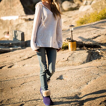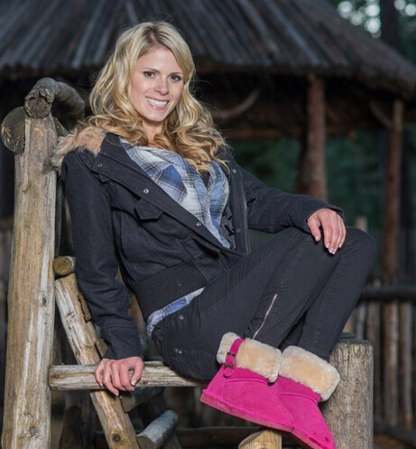 BEARPAW Women's Abby Snow Boot熊掌短款雪地靴,在发挥雪地靴保暖性的同时,比一般中帮款式又更灵活轻便,翻毛鞋领外加扣带装饰,既时髦又温暖。反绒羊皮鞋面,虽然不是像UGG那样皮毛一体,但羊皮内衬植羊毛,以及带毛羊皮鞋垫,降低了成本售价更低廉,并且保暖性同样出色,也获得了四星半的高好评。