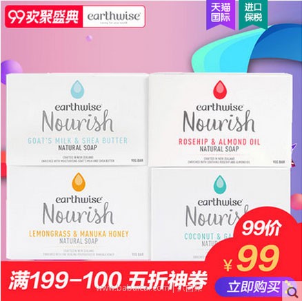 天猫国际:新西兰进口 天然手工羊奶香皂 90g*4块 ¥49.5元包邮,可凑单满99-50 0点开始,白菜!