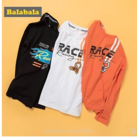 巴拉巴拉 2018秋装新款男童纯棉赛车印花长袖T恤,沉浸在速度与激情的喜悦中,纯棉的面料造就舒适的穿着体验,就连胸口的赛车元素也要来应景,为这场激烈赛事而欢呼。