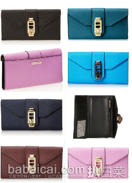 Rebecca Minkoff Mason Wallet女士钱包,是2014年刚上市的新款,采用十字纹压花saffiano牛皮面料,里料同样是十字压花皮料,信封式十字锁扣封口,背面有一个插袋,内部设计了多个卡插和一个拉链内袋,尺寸约为20 *10 *3.5cm,多达六色可选。