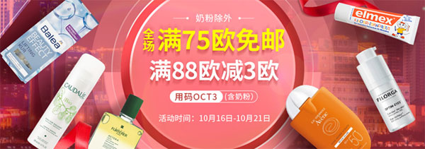 德国DC德式康线上药房全场满75欧免邮,奶粉不参加,满88欧再减3欧促销,需用码:“OCT3”;价格做到更低。有效期至北京时间10月21日。德国DC德式康活动地址>>