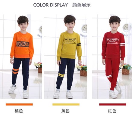 雪中飞 中大童棉质运动休闲两件套,休闲舒适的两件套,内搭单穿都很帅气。3色可选,100~150码全,精选含65%棉和5%氨纶的混纺面料,不掉色不起球不缩水,舒适耐穿,时尚潮酷撞色设计,休闲运动都可以穿。