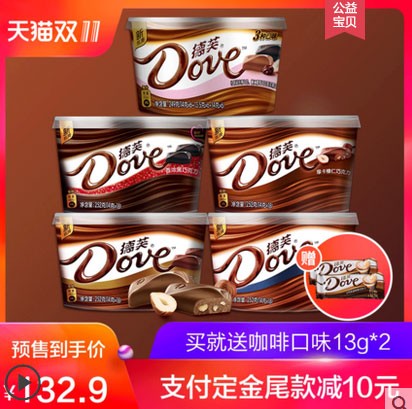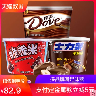 德芙,是人们心中独一无二的巧克力经典。 她独具魅力的丝滑口感与扒白菜香醇回味,征服了众多爱好者的心。充满甜蜜幸福的巧克力,你一定也喜欢~双十一店铺预定享折上折。每天10点,11.11秒礼盒