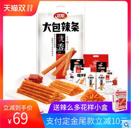 来伊份的产品覆盖炒货、肉制品、蜜饯、水产品、糖果/果冻、膨化、果蔬、豆制品、糕点等九大类,不管你的口味如何,总能找到喜欢的美味哦~双十一付定金最高立减100,万分爆款买一送一,万份爆款半价抢~