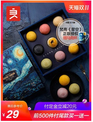 2.1【预售】良品铺子梵高IP版星球九味酥360g雪媚娘蛋黄酥网红零食,点击购买地址>>