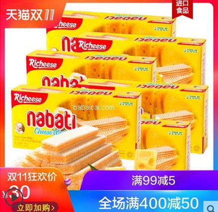 28.2 印尼richeese丽芝士nabati奶酪威化饼干145g*6盒进口休闲零食品