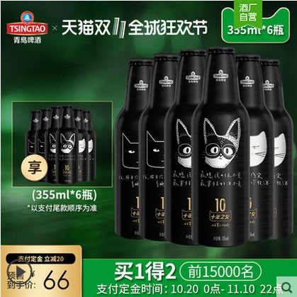 33.1【双11预售】青岛啤酒天猫首发定制铝瓶355ML*6瓶