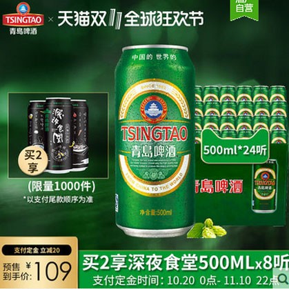 33.2【双11预售】青岛啤酒经典啤酒500ml*24听官方直营整箱包邮