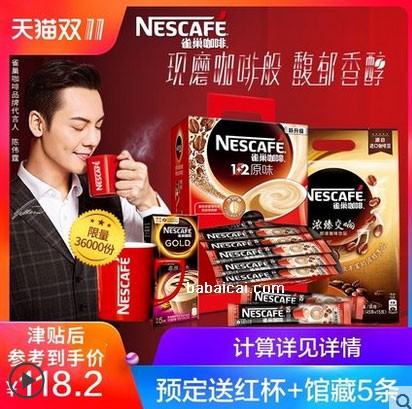 8.1【双11预售】雀巢咖啡1+2微研磨原味+浓臻交响三合一咖啡145条