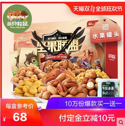 三只松鼠双十一,激活血拼基因。每天开团,预售限时半价;每日11.11元坚果秒杀;定金立减;大额神券秒杀,最高再减50元!