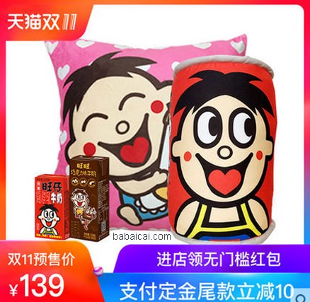 10.2 双11预售 旺仔牛奶巧克力牛奶+旺仔抱枕组合早餐奶抱枕随机发货