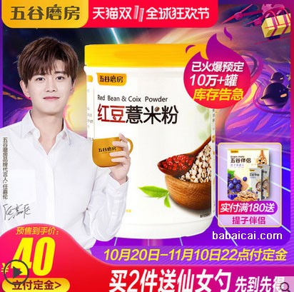 红豆薏米粉,维持正常肠道功能,减少垃圾在体内的时间,营养更好吸收,全家都可使用。预售到手40元 限量买2送仙女勺