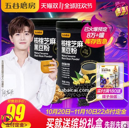 双十一付定金享立减,可先领取无门槛券3元,99-20,199-40优惠券。每日限量秒杀9.9元