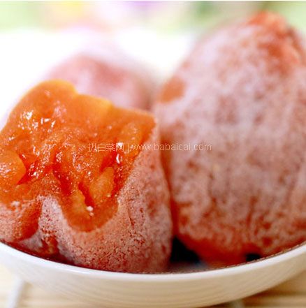 目前天猫商城脆脆妙旗舰店 500g袋装,售价¥59,2件5折,还可使用店铺¥30优惠券,2件实付¥29包邮,吊霜柿饼,人工挑选,天然晒制而成,味道滋润爽口,肉厚饱满口感紧实。天猫商城购买地址>>