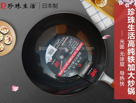 天猫商城:日本进口 Pearl Life 珍珠生活 GP-1512 无涂层 光面高纯铁炒锅33cm 现价¥399,领¥200优惠券,券后实付¥199包邮 锅体一体成型,越用越好用~