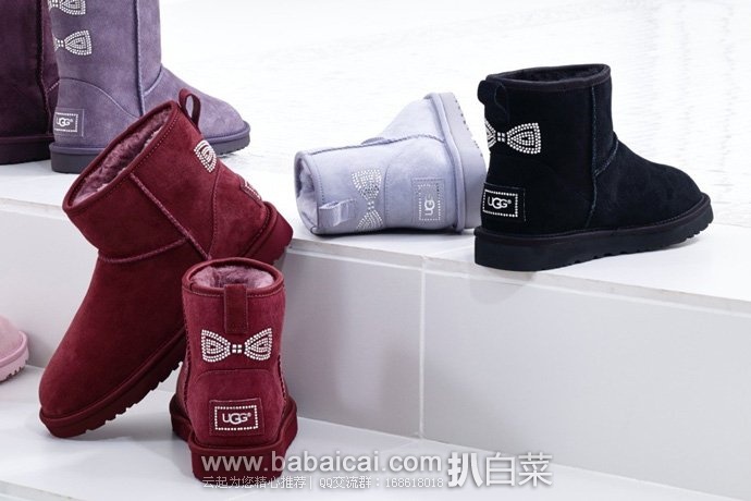 说起UGG Australia应该不用多说,简直是雪地靴的代名词了,其产品有弹性好、穿着舒适、保暖性好、易保养等出色特点。已经成为冬季最受欢迎的鞋履,被众多好莱坞明星所追捧!这款鞋子经典款型,后帮水钻拼成蝴蝶结,采用柔软的羊皮,内里纯正羊羔毛,不仅保暖而且真皮材质自然吸潮,保持脚部干爽舒适。轻质EVA材质鞋底轻便防滑。筒高12.7CM 筒围25.4CM。