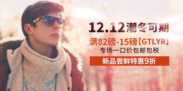 目前Get The Label中文官网开启了"12.12潮冬可期"为主题的促销活动,活动时间11月30日-12月05日,全场满£82-15,需用优惠码GTLYR,下单即包税,折前满£60即可免费直邮中国(限重3kg),免邮门槛不高,同时还不用担心被税的风险,Get The Label海淘十分友好,10来天到手。Get The Label中文官网活动页面>>