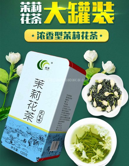 林湖茶叶 明前浓香型茉莉花茶250g罐装,选用毛峰绿茶为原料,新鲜茉莉,香气高扬,滋味厚重,经久耐泡。四川林湖茶业有限公司 是四川省集中扶持的20家出口型茶叶企业之一。于一九七七年建厂,41年历史。