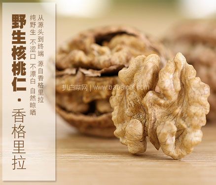 馋嘴虎 手剥野生核桃仁,来自香格里拉野生百年核桃树,手工去皮剥仁,无漂白无添加。又香又脆,特大果仁,纯人工筛选。颗颗饱满。野生更营养,0添加更健康。孕妇小孩必备零食,好吃到停不下来。核桃仁含有丰富的营养素,每百克含蛋白质15~20克,脂肪较多,碳水化合物10克;并含有人体必需的钙、磷、铁等多种微量元素和矿物质,以及胡萝卜素、核黄素等多种维生素。对人体有益。是深受老百姓喜爱的坚果类食品之一。