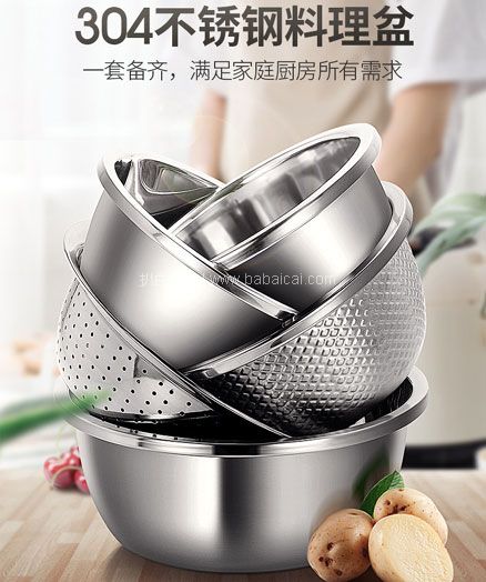 Vatti 华帝 304不锈钢料理盆,整体采用304不锈钢材质,可直接与食物接触,安全健康,整体加厚处理,用料充足,耐磨耐用不变形;加深大容量造型,可盛放更多食材;电磁炉可直接加热,适用各种灶具。