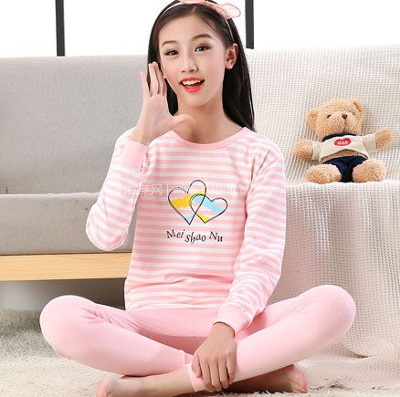 乖米柯 青少年中大童纯棉保暖内衣套装,采用优质精梳棉材质,色泽度高,无刺激,绿色环保,缩水率低;活性印染,健康不褪色;卡通图案点缀,可爱时尚。