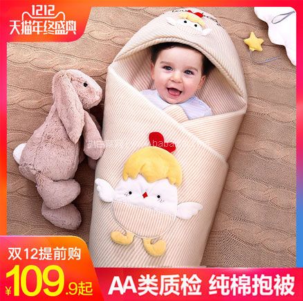 天猫商城:A类品质, 100%纯彩棉加厚宝宝包被 多规格 现价¥99.9起,领¥50优惠券,实付¥49.9起包邮 让宝宝温暖舒适每一天~