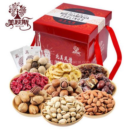 美荻斯是好利来(中国)集团投资有限公司旗下品牌,天猫商城旗舰店这款坚果礼盒1418g,现价¥113,可领¥45元优惠券,实付68元包邮,内含9种坚果、果干,自己吃、送礼都很划算。天猫商城购买地址>>