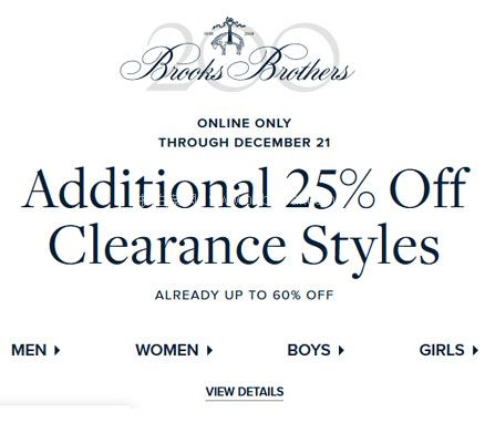 Brooks Brothers布克兄弟官网:清仓区服饰鞋包 低至4折+额外7.5折 无需用码~