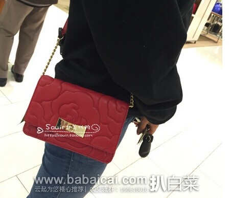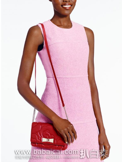 2014年新款 kate spade 凯特丝蓓 小香风 山茶花 玫瑰纹 女士羊皮斜挎包原价$298