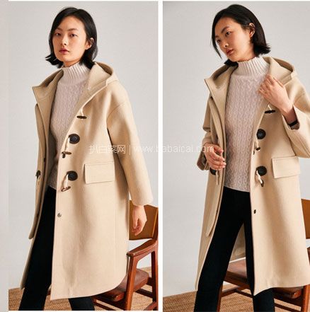 唯品会:秋水伊人 女士 牛角扣连帽大衣 ¥298元包邮 宽松版型,适合春秋穿搭!