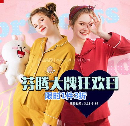 当当 芬腾 大牌日狂欢购 优惠力度如下:专场1件3折,新品1件4折,家居服、睡衣、男款、女款都有涵盖。活动时间至3月19日。当当活动地址>>