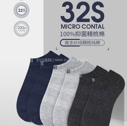猫人 男式春夏全棉低帮船袜 6双,精选精梳棉材质,不易起球,透气不臭脚,亲肤透气,舒适纯棉,多色可选。
