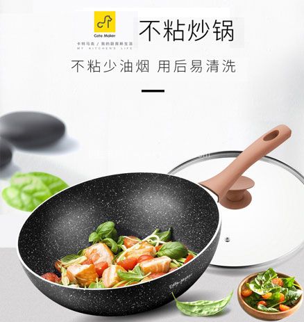 天猫商城:CATE-MAKER 卡特马克 麦饭石不粘煎炒锅30CM 现价¥128,领¥40优惠券,券后¥88包邮 煎炒两用,送锅盖+木铲!