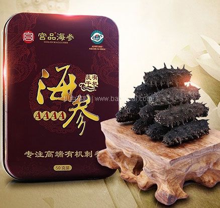 天猫商城:有机食品认证 宫品4A级纯淡干海参50g   现价¥369,领¥170优惠券,券后¥199包邮