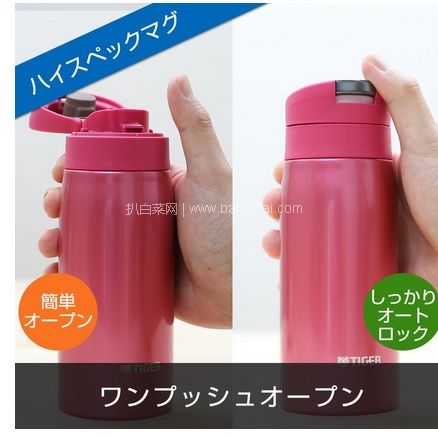 这款TIGER 虎牌MCX-A035-KL保温杯,梦重力系列保温杯,被称为同容量条件下的世界最轻水杯,已经成为国人日本旅行必买物品。采用babaicai.com不锈钢材质,61℃以上保温6小时,83℃以上保温1小时,10℃以下保冷6小时。冬夏都可使用。最新一代点解研磨技术,使其内壁更加光滑,耐清洗,耐高温。一键式闭合设计,单手操作也非常方便。容量为350ml左右,规格为6.6×6.6×18.0cm,而且重量只有170,轻便易携,方便实用,非常适合出门旅游或是上班通勤随身携带。开口带自动锁功能,不用担心不小心打开,十分安全。