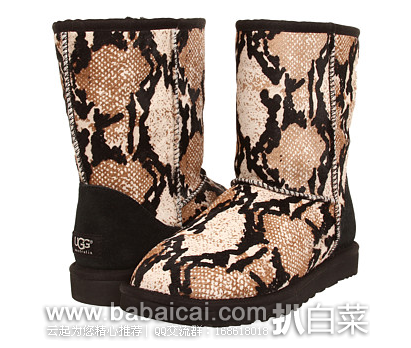 1、UGG Classic Short Reptile Calf Hair女士雪地靴,原价$225,目前6pm上售价$145.99,公码85折后$124.09。