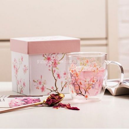 网易考拉海购:考拉工厂店 桃花双层玻璃杯 350ml 拼购价¥39包邮 好价,非常漂亮!