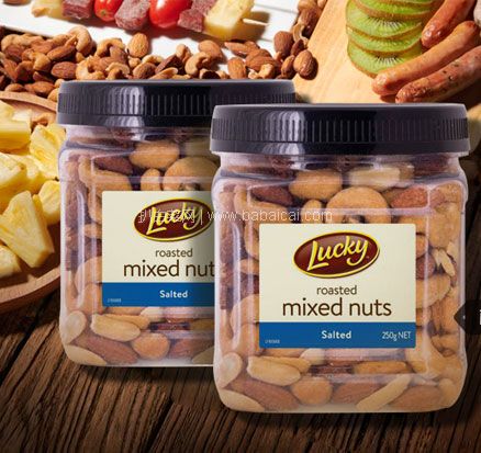 天猫商城:澳洲进口 LUCKY 栗祺 盐烤混合坚果250g 双重优惠后¥33.9元包邮    颗粒饱满,入口酥脆~
