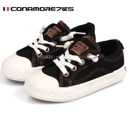 这款Conamore 7&5 儿童休闲帆布鞋,鞋头有白色贝壳头,但设计的比较宽,除了好看,不卡脚趾之外,还能保护脚尖。鞋面是用透气耐穿的帆布制成,后跟缝制的后跟,有稳定的后跟支撑,可以避免孩子形成不良的走路姿势。白色橡胶鞋帮,防滑全橡胶大底,柔软舒适有弹性,独特的纹理设计,增强了防滑摩擦力。款式上设计的也很好看。