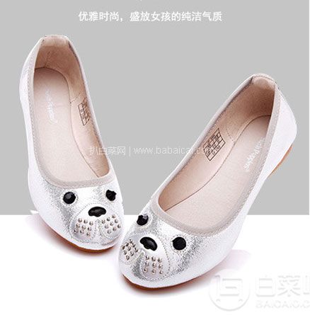 暇步士 2019春季新款女童皮鞋亲子鞋,巴吉度猎犬亚克力装点,可爱醒目造型,个性有趣;提高式后跟,服帖包裹;柔韧大底,可360度自由弯折,行走轻松自在。