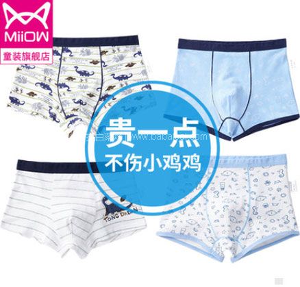 天猫商城:A类标准,猫人 中大童 精梳棉平角内裤 4条 限价¥39.9,领¥15元优惠券,券后新低¥24.9包邮 透气性好~