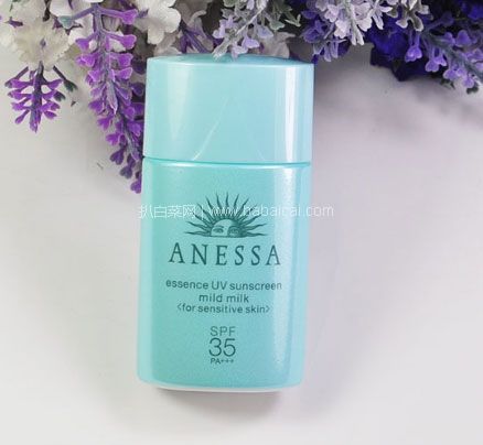 精华UV温和 Anessa 防晒霜20ml 小蓝瓶,安耐晒专门为儿童、敏感肌推出的温和款,超温和,不刺激。从6个月的宝宝到16岁的青少年,成人过分敏感肤质和孕妈妈都可以用。新款防晒系数有所调整,从原来SPF34/PA+++升级为SPF35/PA++++。这款防晒呈乳液状,基本没有香味,水润不油腻,易推开,控油效果不错,用儿童沐浴露可以轻松卸掉。
